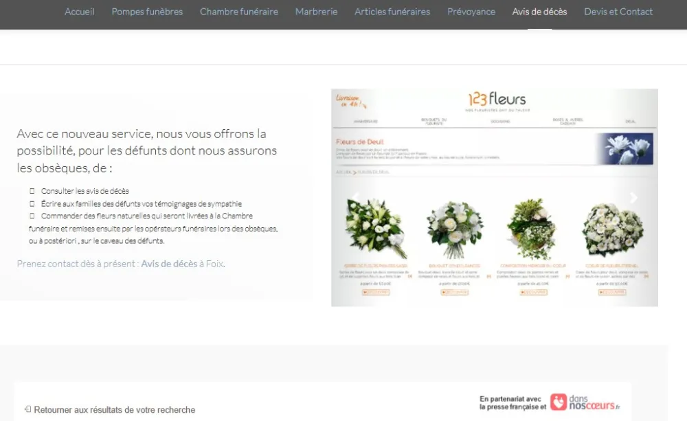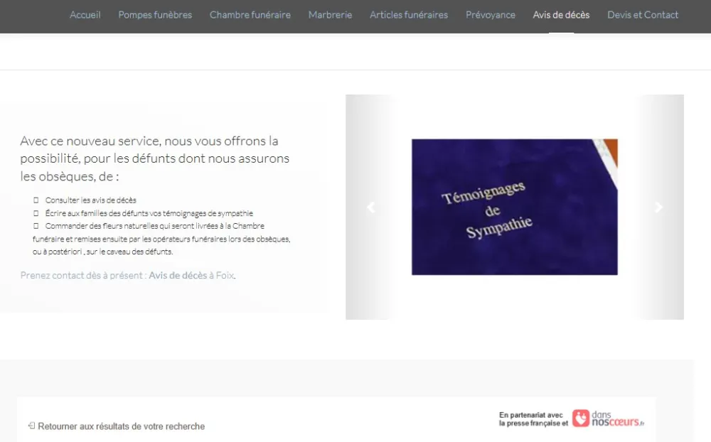 tous les renseignements seront corrects et vous pourrez également laisser un message de sympathie et commander des fleurs également si vous le souhaitez.