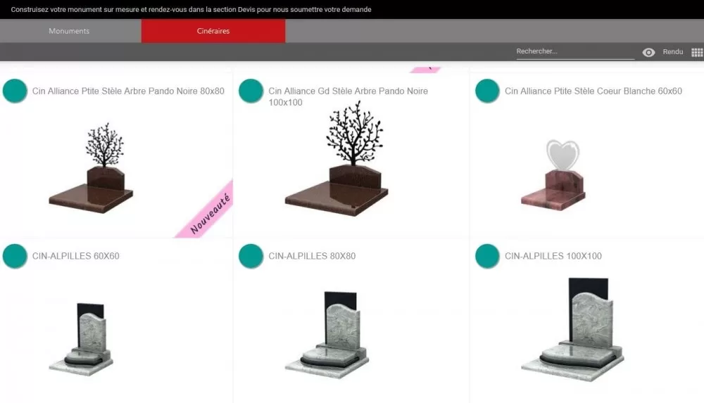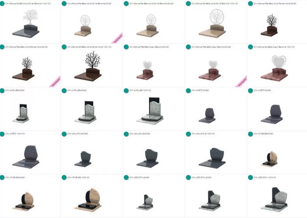 Les Pompes funèbres ENSALES FUNERAIRE vous proposent, dans leur catalogue interactif de monuments funéraires, de nouvelles stèles utilisées également sur les monuments cinéraires ou cavurnes (onglet Cinéraire du catalogue interactif) avec 3 nouveaux motifs qui se développent sur 3 tailles différentes : L'Olivier, l'Arbre de Vie ou l'Arbre Pando.