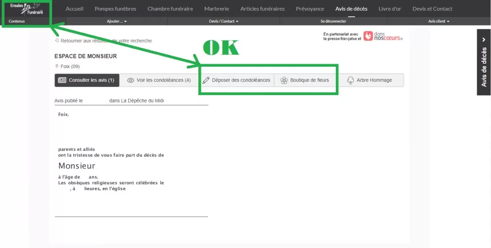 Avis de décès | Ensales Funéraire (ensales-funeraire.fr) et pouvoir laisser vos messages de condoléances et/ou d'amitié